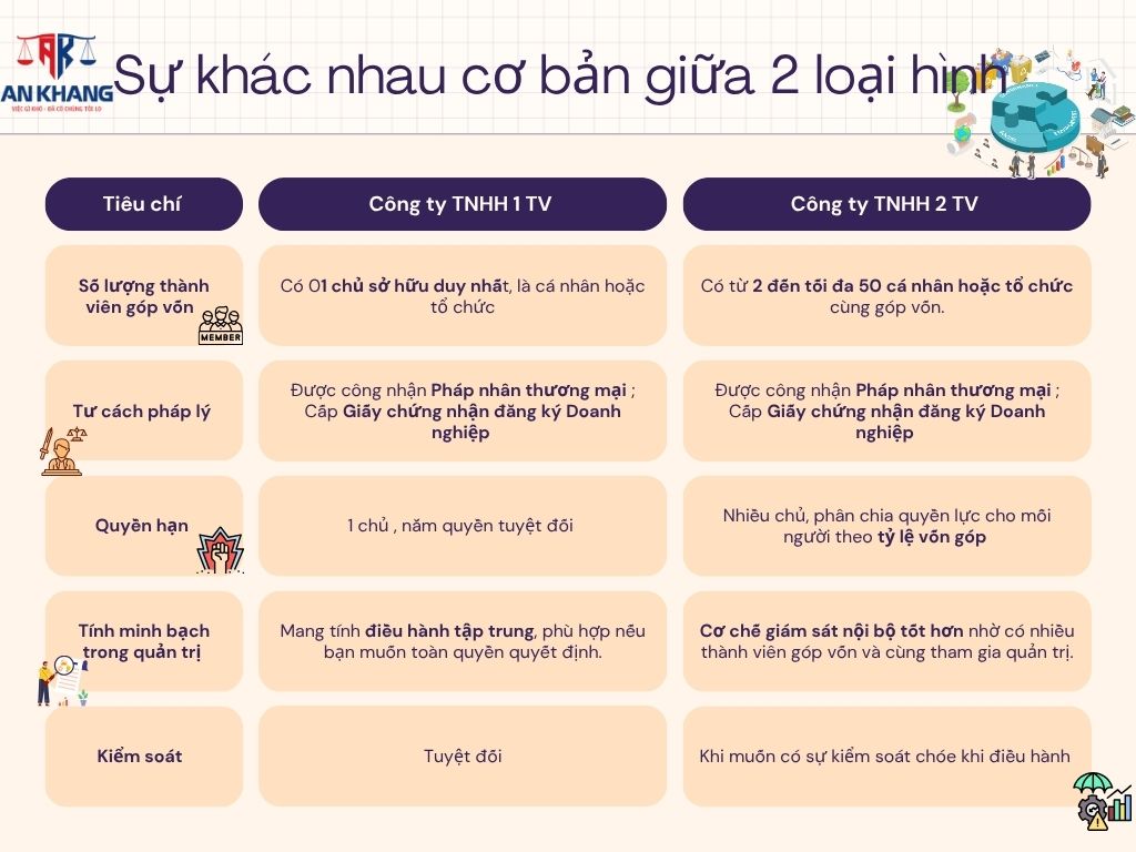 Công ty TNHH 2 thành viên có những điểm khác biệt gì so với công ty TNHH 1 thành viên?