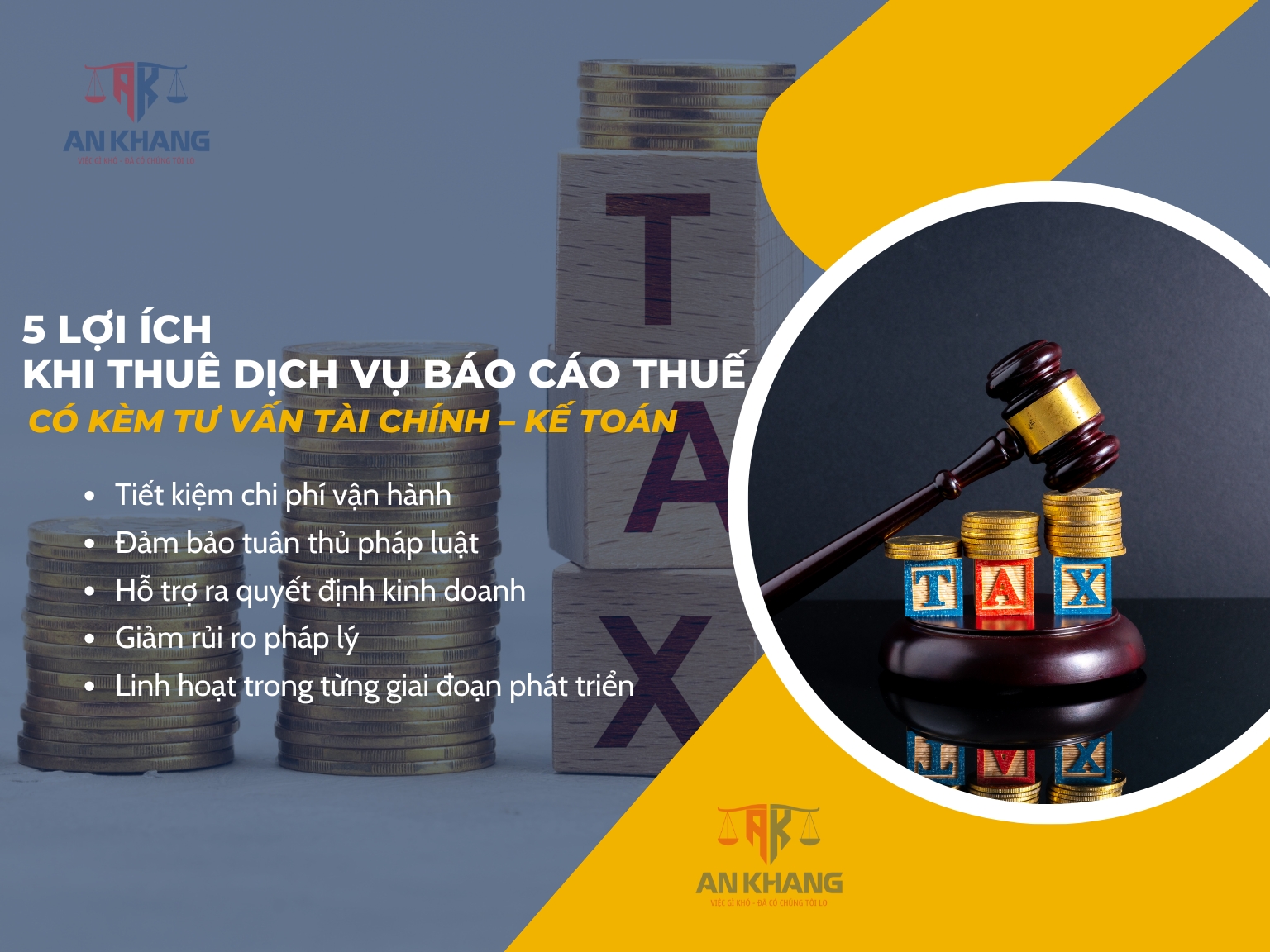 Trong môi trường kinh doanh đầy rủi ro về thuế hiện nay, nhiều doanh nghiệp băn khoăn: dịch vụ làm báo cáo thuế có bao gồm tư vấn tài chính và kế toán không? Đây là một trong những câu hỏi quan trọng, bởi lựa chọn đúng dịch vụ không chỉ giúp doanh nghiệp tuân thủ pháp luật mà còn tối ưu chi phí và định hướng phát triển. Nếu bạn đang tìm câu trả lời, hãy cùng Luật và Kế toán An Khang phân tích chi tiết trong bài viết dưới đây để hiểu rõ hơn về phạm vi dịch vụ, lợi ích, cũng như cơ sở pháp lý liên quan.